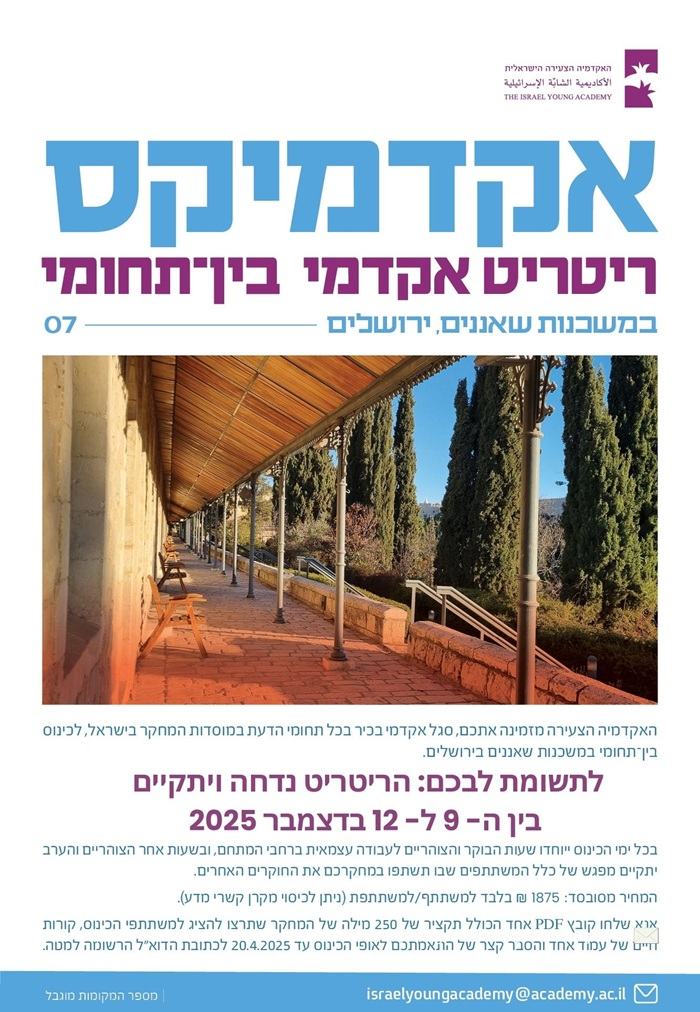 כינוס אקדמיקס חוקרים השביעי של האקדמיה הצעירה הישראלית, שתוכנן להתקיים ב-16–20 ביוני 2025, נדחה בעקבות מתקפת הטילים מאירן והתקיים בסופו של דבר במשכנות שאננים בירושלים בדצמבר 2025. הכינוס הבין-תחומי הפגיש חוקרות וחוקרים מצטיינים מתחומי דעת ומוסדות מגוונים לארבעה ימי העשרה והרחבת אופקים מחקריים.