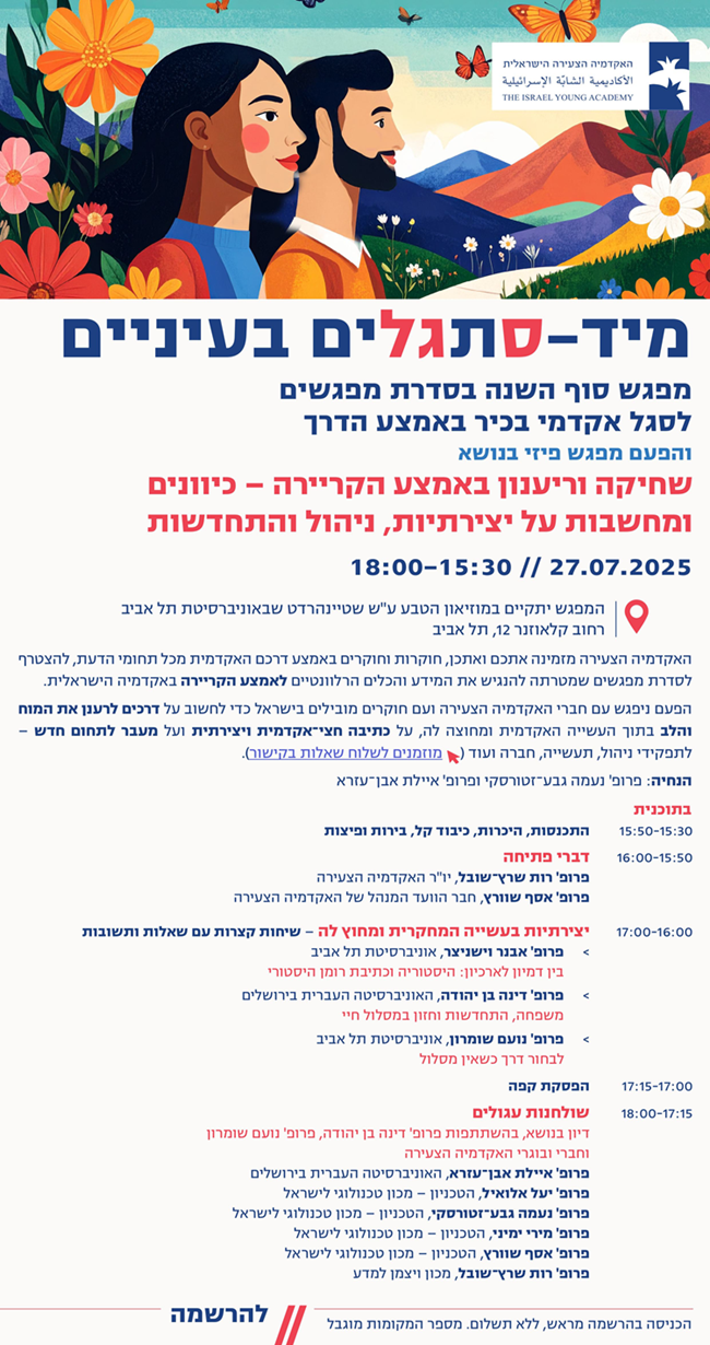 מיד-סתגלים לאקדמיה מפגש סוף השנה | שחיקה וריענון באמצע הקריירה – כיוונים ומחשבות על יצירתיות, ניהול והתחדשות